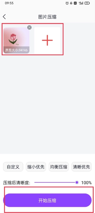 2、在你的相册里找到需要压缩的图片,支持批量操作,接着点击下方对应的选项启动压缩流程,压缩完成后就能把图片保存到本地相册中了。