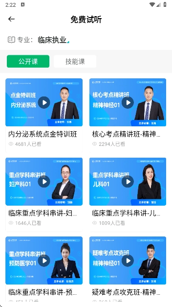 1、在本站安装医学直播课堂打开,选择您的职业分类