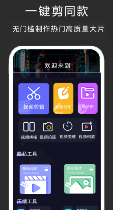 一键剪同款除了主功能外,还配备了多个实用小工具:隐私工具能帮你妥善隐藏隐私视频与图片,压缩工具则可助力文件的压缩打包,有效节省存储空间。这确实是一款相当不错的视频处理工具。