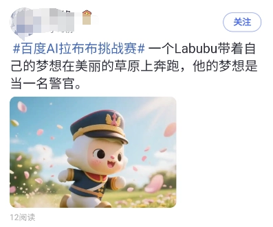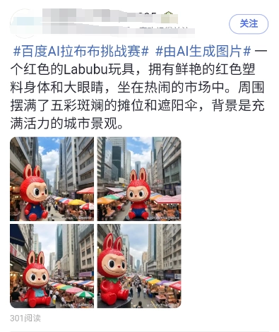 Labubu拉布布的热潮早已风靡全球,你是不是也对这只古灵精怪的小怪兽心动不已?现在,百度诚邀你参与“百度AI拉布布挑战赛”,用AI的力量打造出你心中独一无二的拉布布形象,让创意在智能技术的加持下肆意绽放!
