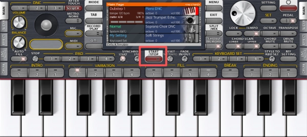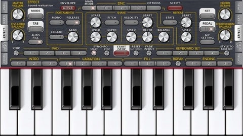 •模拟KORG键盘具备以下功能:退色、同步、键盘设置、节奏、转置、八度、平衡、调整、分裂、和弦记忆、点击速度调节及重置等…