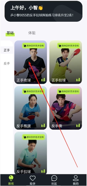 1.用户进入软件后,可直接在教练页面选择自己感兴趣的运动进行学习。