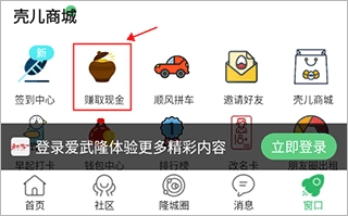 1、进入爱武隆的窗口界面,点击“赚贝壳”。