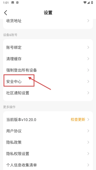 进入设置页面后,找到并点击安全中心选项,即可进入安全中心页面。