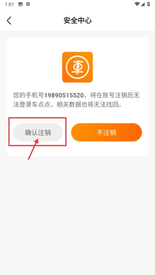 在安全中心页面,点击确认注销按钮,即可完成账号注销操作。