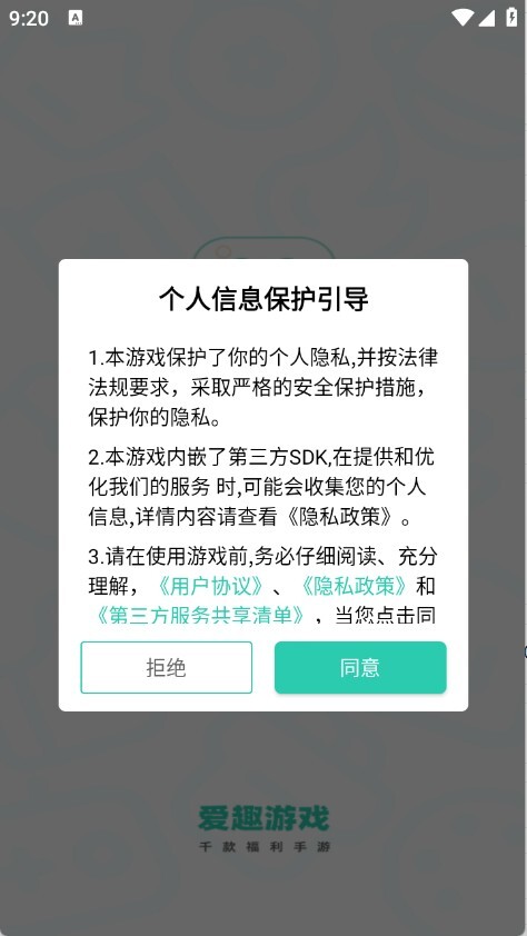 1、用户首先需在本站爱趣游戏平台,查看并同意隐私政策与用户协议。