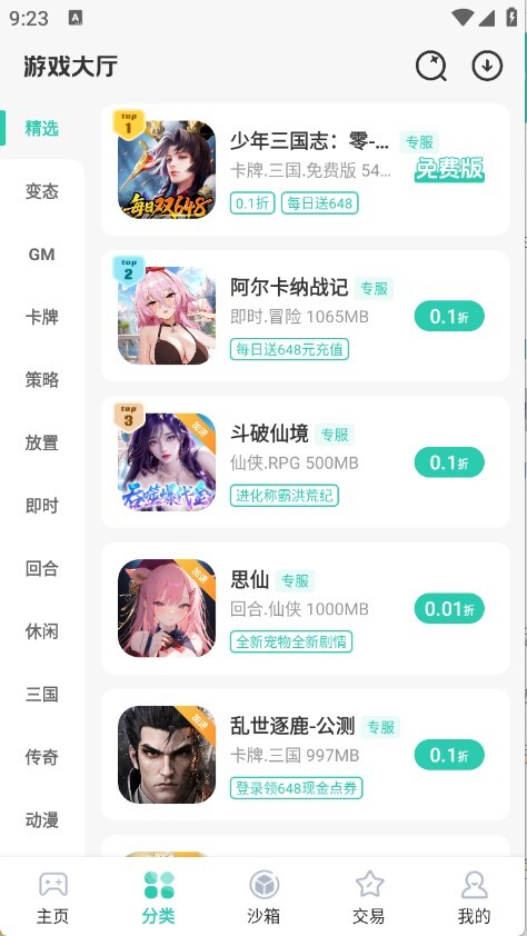 4、分类将游戏进行了详细的归类。