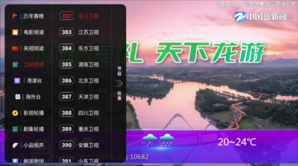 3、轻点屏幕即可调出菜单,在这个界面里你能随意切换自己想观看的电视频道。