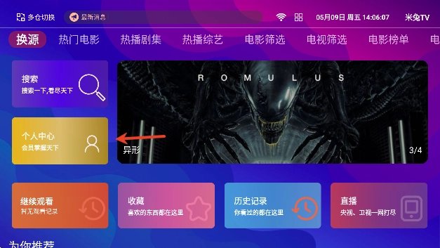 1、打开ABCTV电视直播软件后,直接进入个人中心页面。
