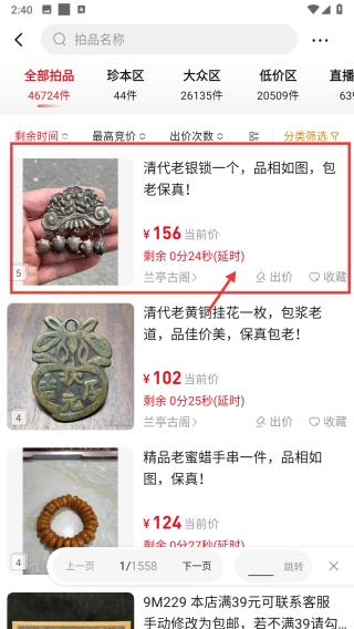 在拍卖页面,点击“全部拍品”分类,即可进入拍品列表页面。