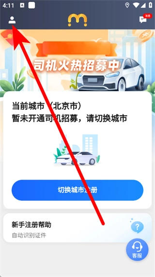 打开麦巴司机应用,点击界面左上角的个人图标,即可进入个人中心页面。