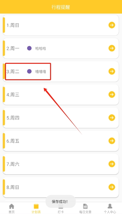 再回到计划表页面,就能看到刚才添加好的行程啦。