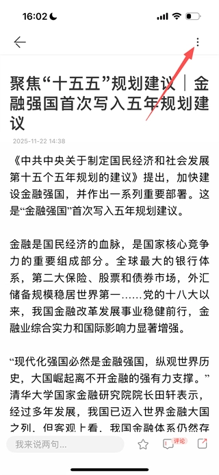 进入新闻详情页面后,点击页面右上角的三点图标,就能打开操作菜单。