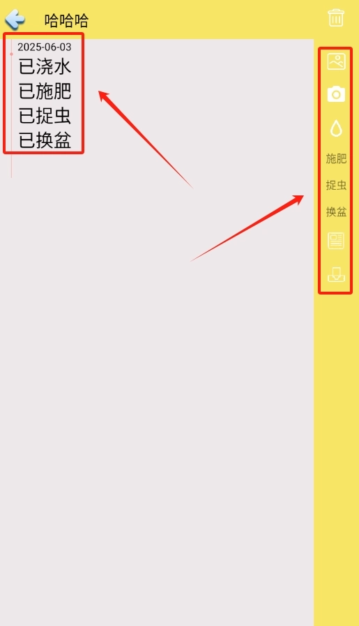浇水、施肥这类养护工作,只要点击右侧对应的按钮就能迅速记录下来,既便捷又省心。