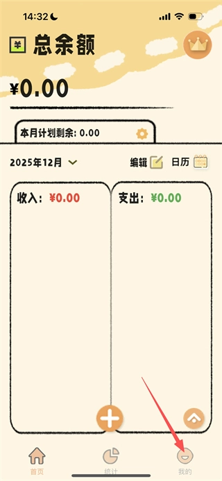 在鲸鲨记账的首页,点击底部导航栏中的“我的”选项,即可进入个人中心页面。