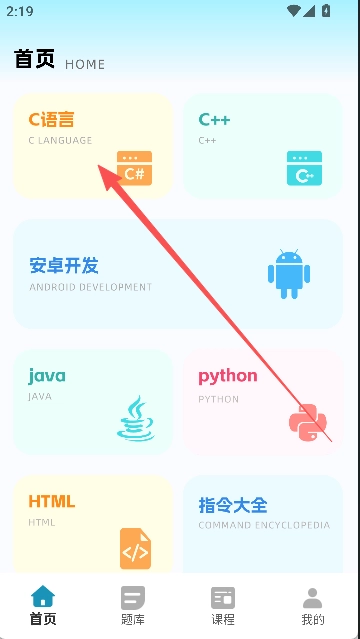 3.进入首页,选一个感兴趣的课程,比如说这里我选择【C语言】