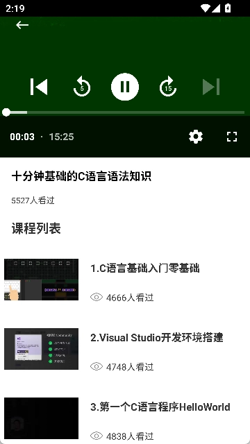 4.软件将自动开始播放,下方可选择课程内容