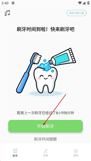 在刷牙页面,点击“开始刷牙”按钮,即可进入与登录相关的界面。