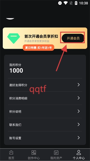 在个人中心界面点击开通会员。