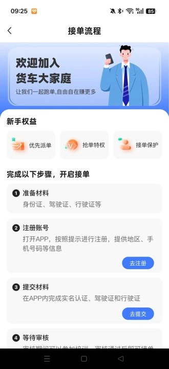多平台一站式注册:轻松搞定货拉拉、运满满等平台的资质认证流程,无需重复提交资料。
