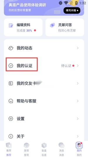 打开你的真搭App,在个人中心点击认证功能。