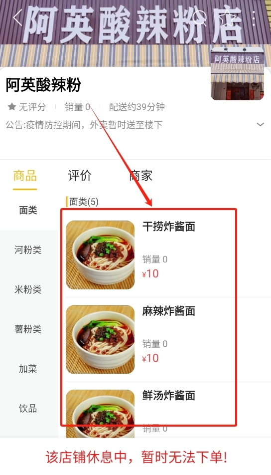 登录完成后,进入外卖专区慢慢挑选,看看哪家店铺仍在营业,并且菜单符合你的口味。