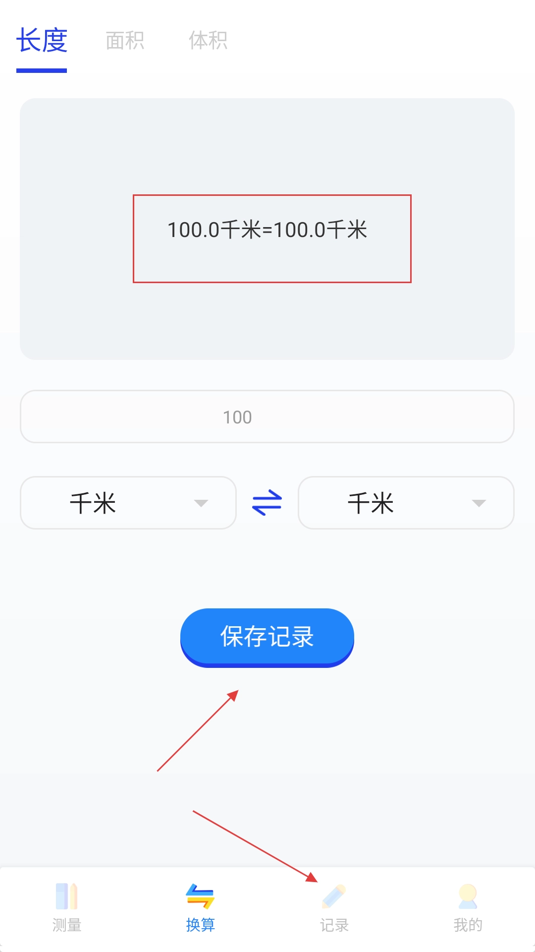 换算结果出来后,先点击【保存记录】按钮把换算结果存下来,接着再点击记录。