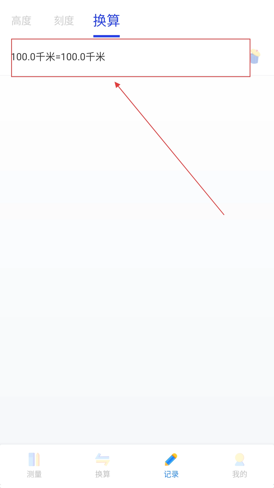在测量页面中,点击底部导航栏的【换算】按钮,即可进入换算页面。