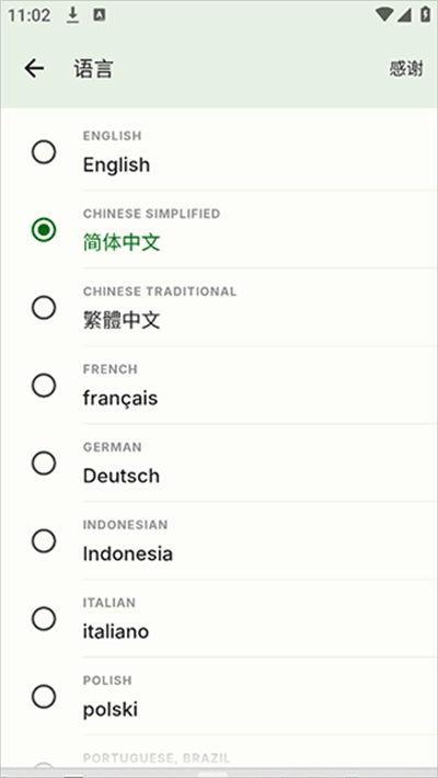在语言列表中,选择简体中文即可完成设置。