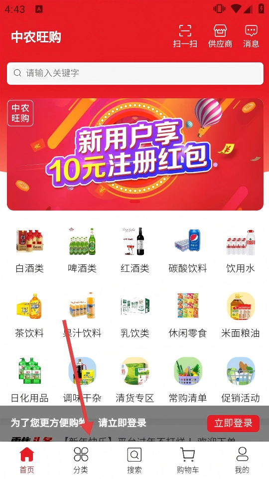 进入【中农旺购】首页后,点击底部导航栏的【分类】选项,即可进入商品分类页面。