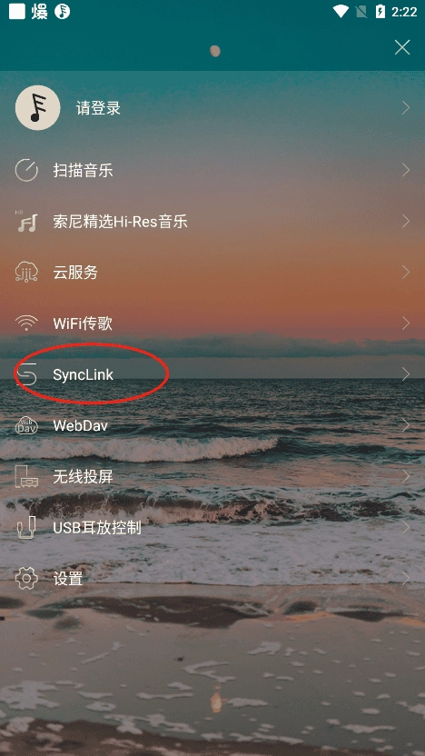 2、打开软件后向右滑动找到Synclink功能,进入该界面后开启控制端的开关。