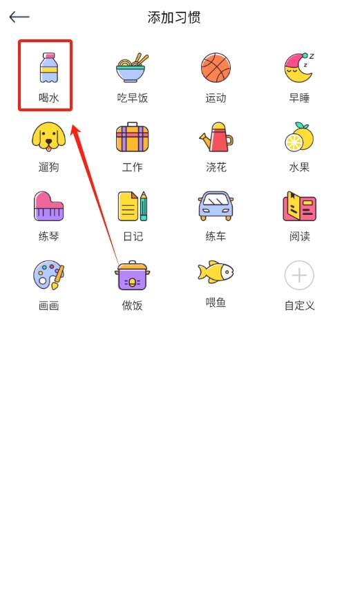 在习惯列表中找到你希望培养的习惯,比如喝水、运动这类,直接点击即可选中。