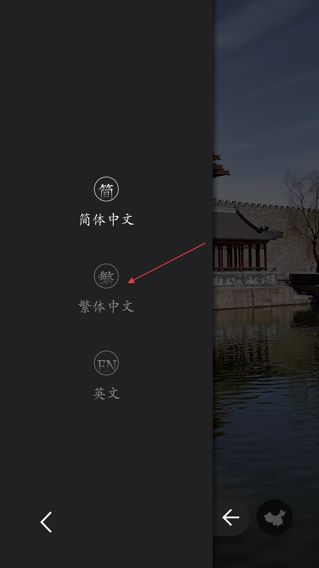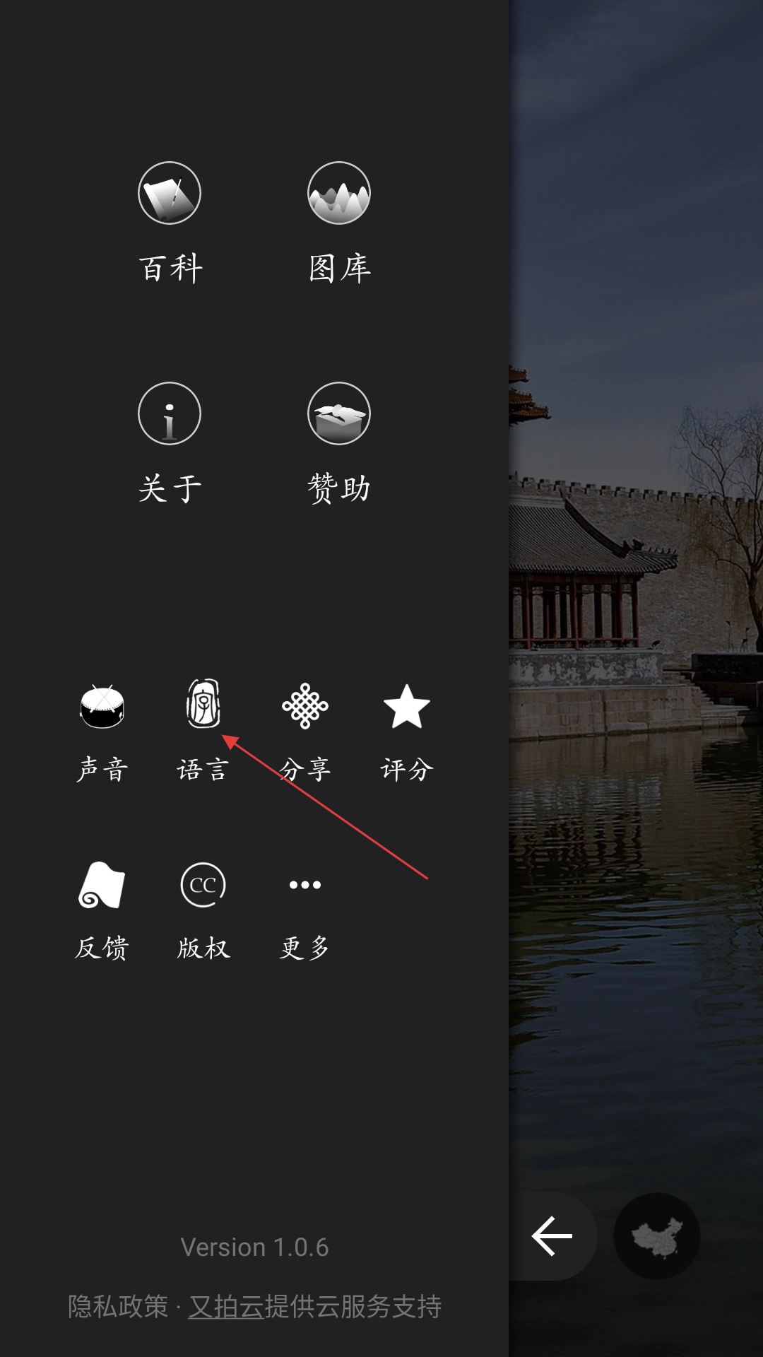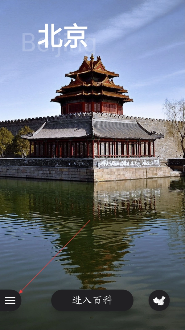 在展示北京风景的页面点击左下角【菜单按钮】。