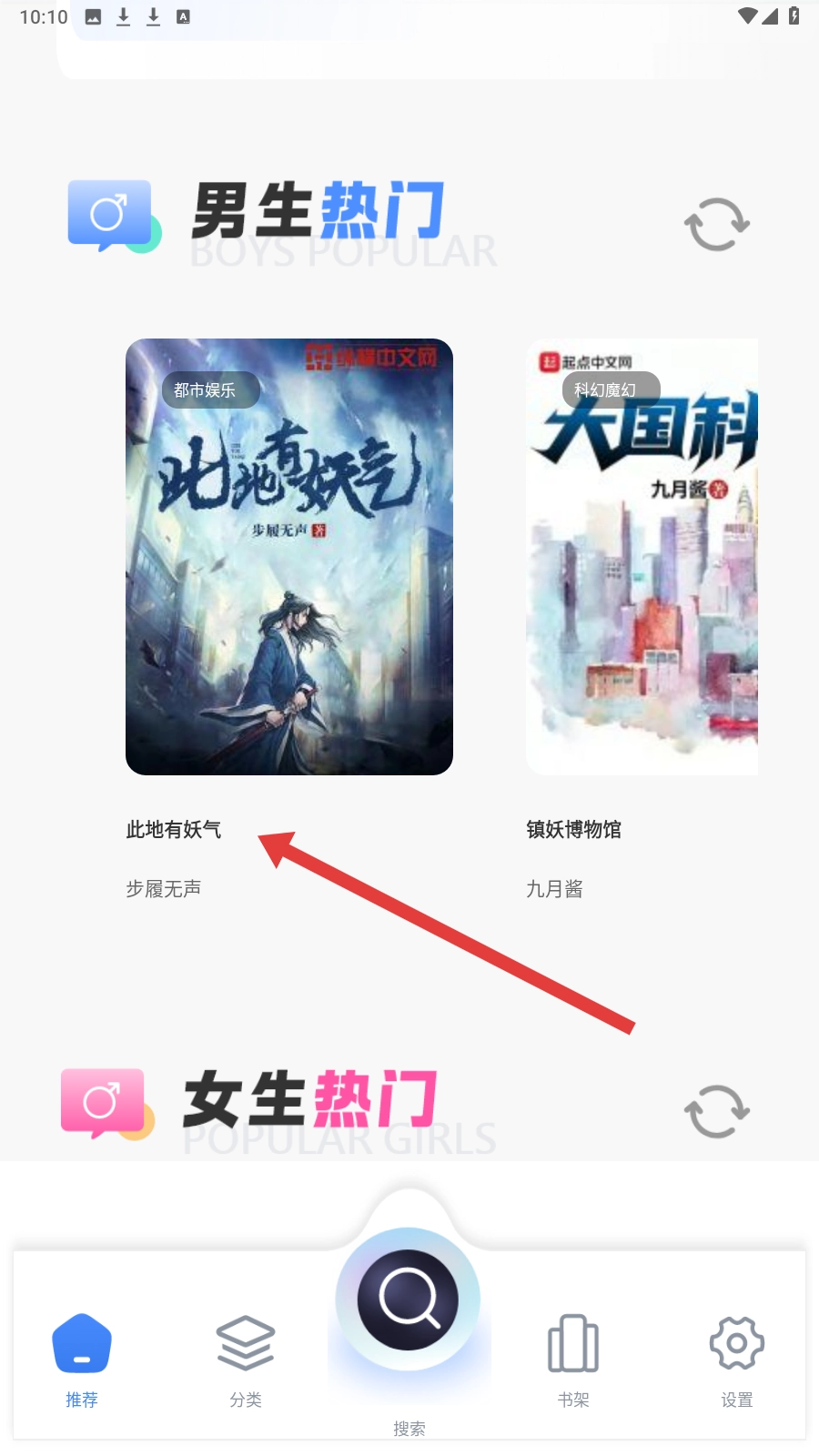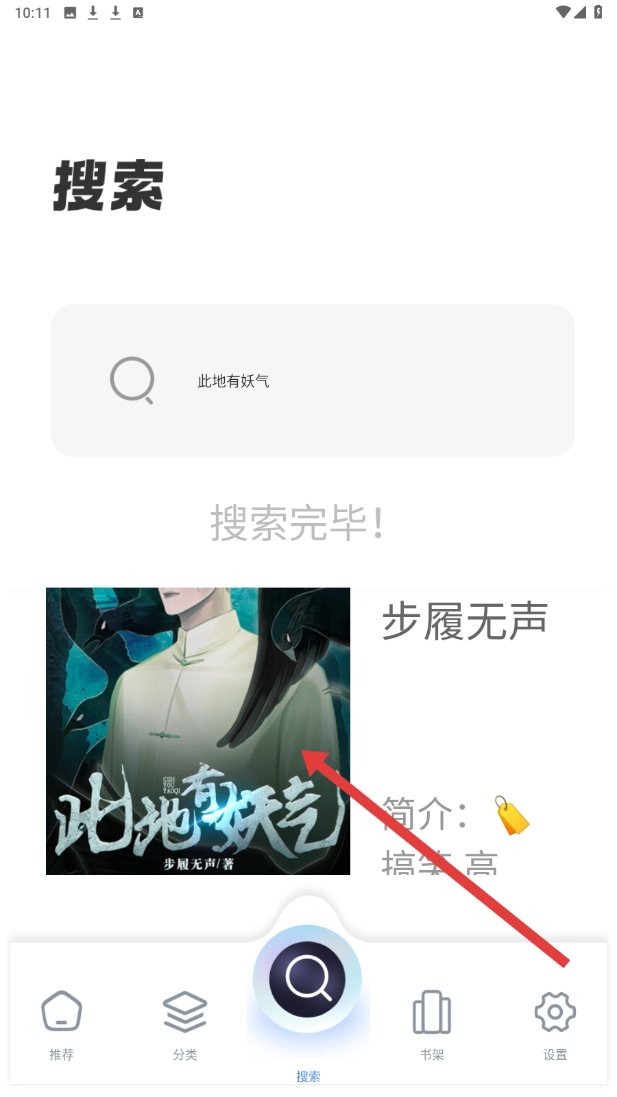 在小说推荐页面,点击你感兴趣的小说,比如《此地有妖气》,就能进入该小说的详情页面。
