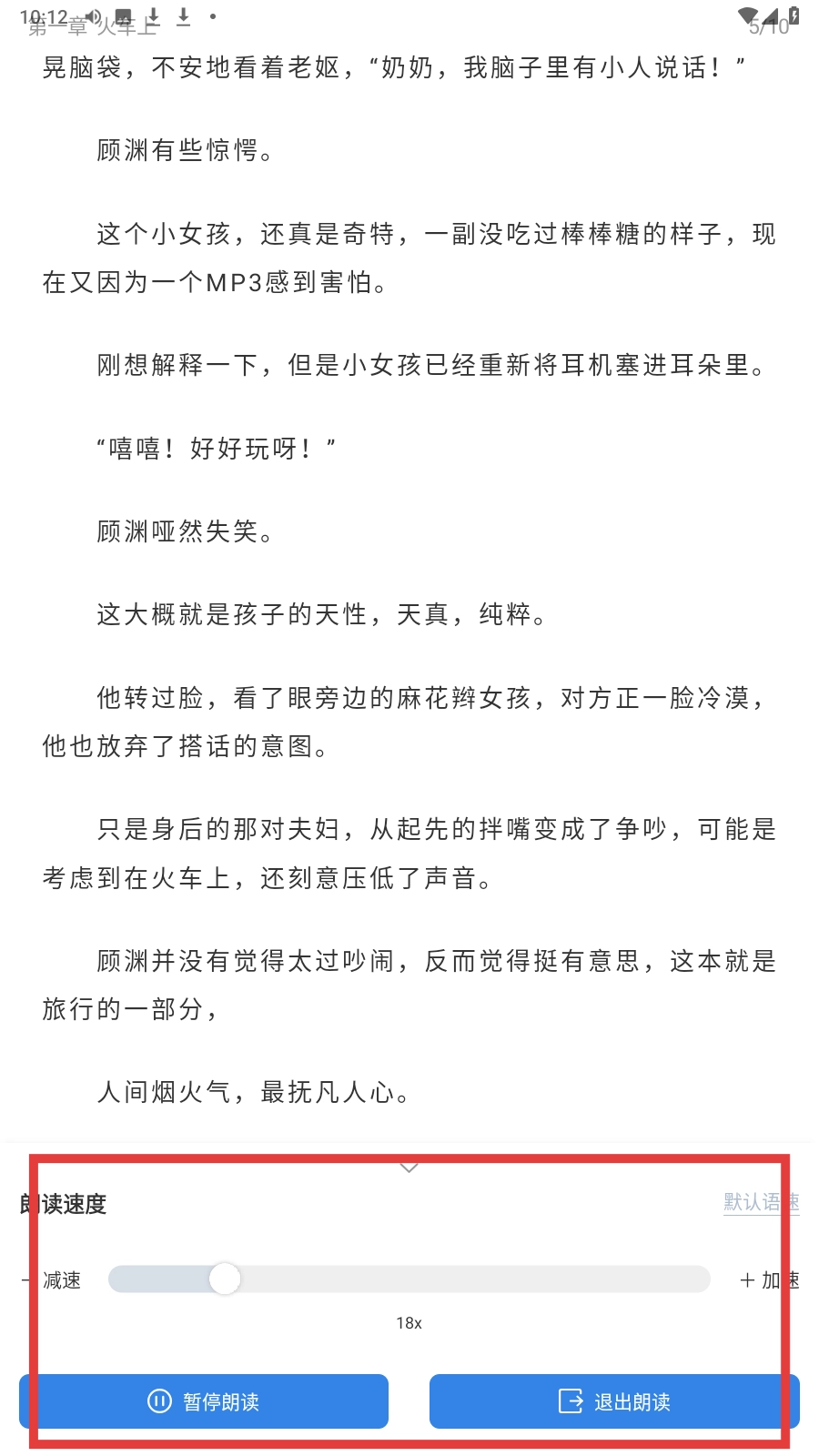 在阅读界面,你可以借助底部的功能栏来调节朗读速度,还能暂停朗读或者退出朗读状态。