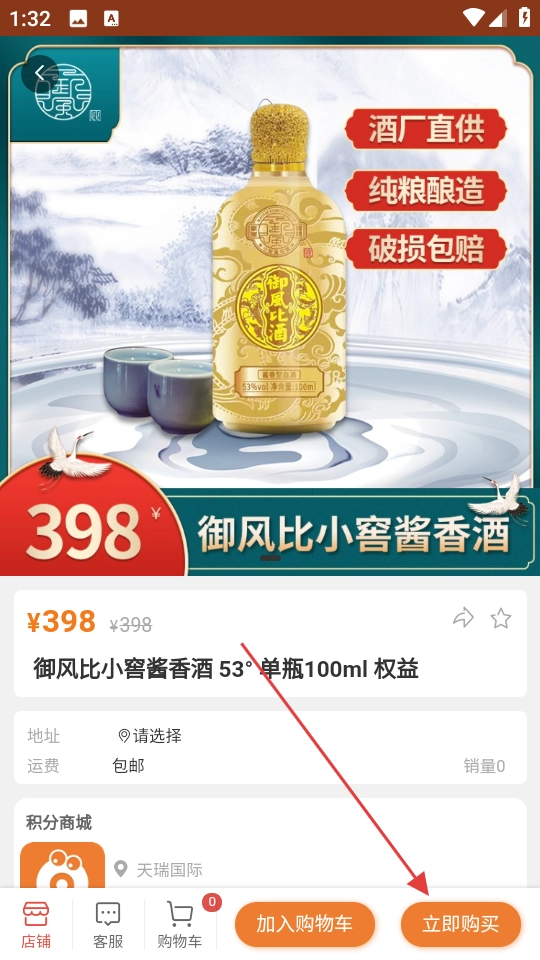 在商品详情页面,点击【立即购买】按钮,即可开展商品购买流程。