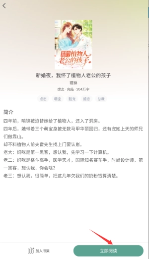 进入小说详情页面后,直接点击“立即阅读”按钮,就能畅快阅读完整的章节内容了。