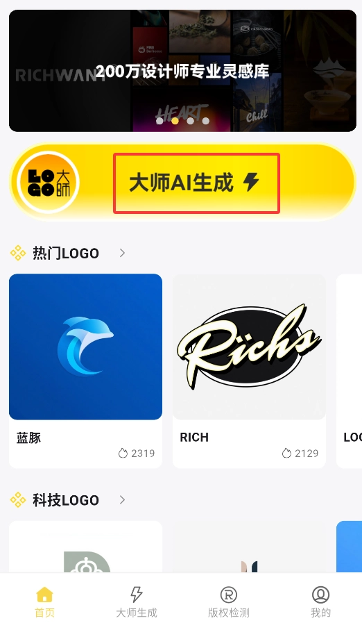 启动后,点击首页的“AI生成”按钮,即可进入智能LOGO设计界面。