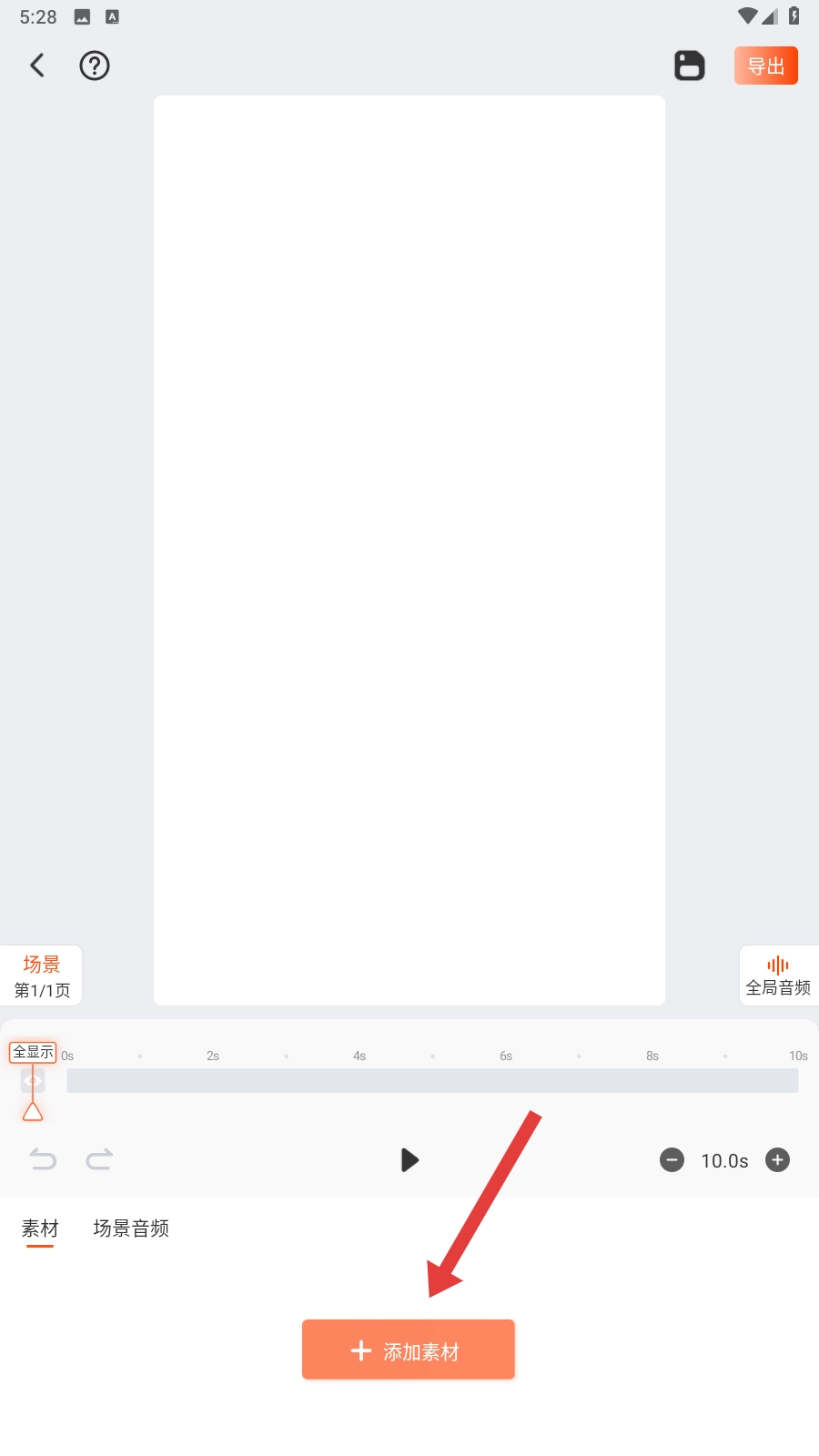进入编辑界面后,点击【添加素材】按钮,就可以往动画中添加各种各样的元素啦。
