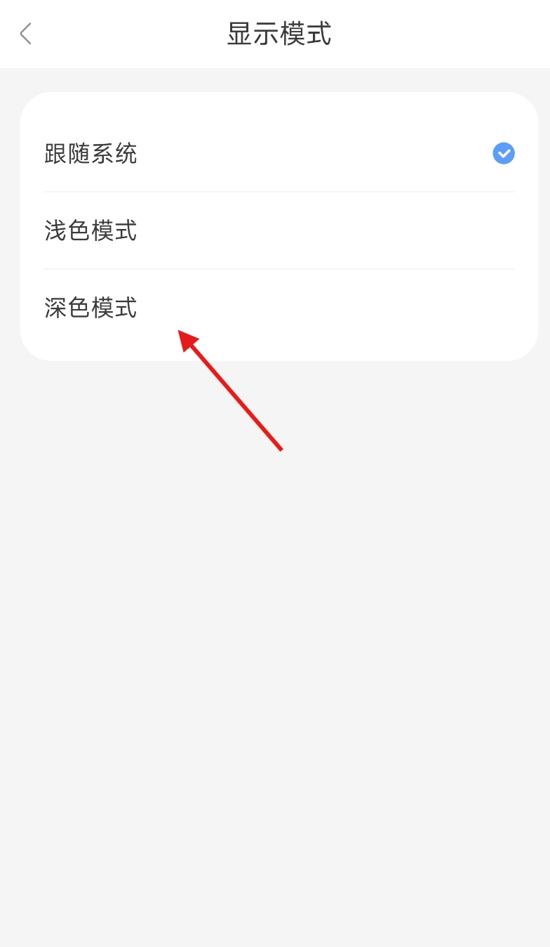 在显示模式的列表里,找到“深色模式”这一选项,点击它就能完成界面显示模式的切换。