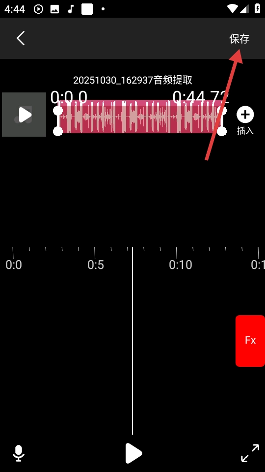 在音频编辑界面完成编辑操作后,点击界面右上角的【保存】按钮,就能将编辑好的音频保存下来。