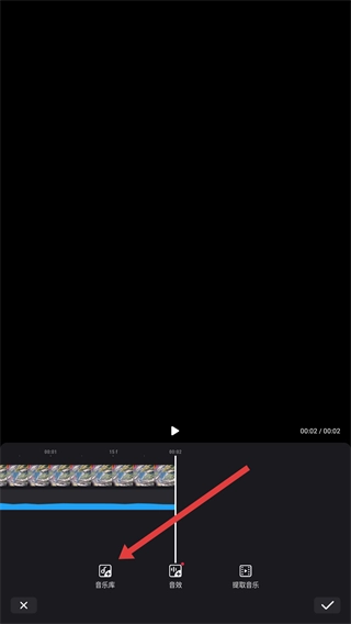 在视频编辑界面里,找到底部的【音乐】按钮,点击该按钮即可进入音乐选择的环节啦。