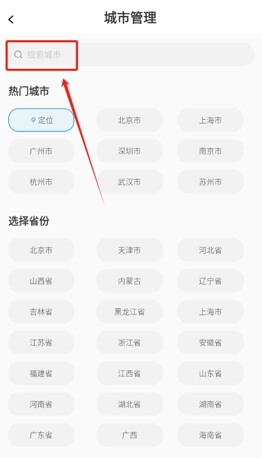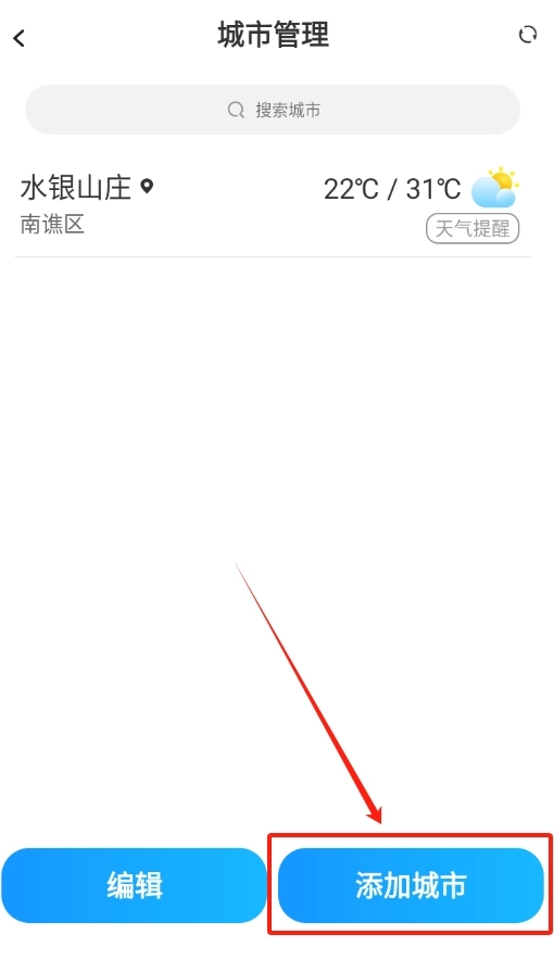 在搜索框中输入城市名称,输入完成后点击确定按钮,该城市的天气信息就会添加到你的列表中了。