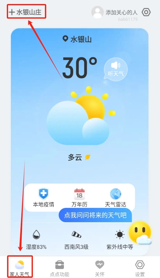 智能机器人具备天气快捷问答功能,还能定制个性化出行建议;用户可添加多位家人所在地区,实现多地天气情况的同步查看。