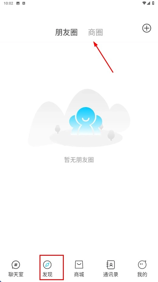 点击底部的【发现-功能按钮】,进入发现页面后,再点击【商圈-标签】。