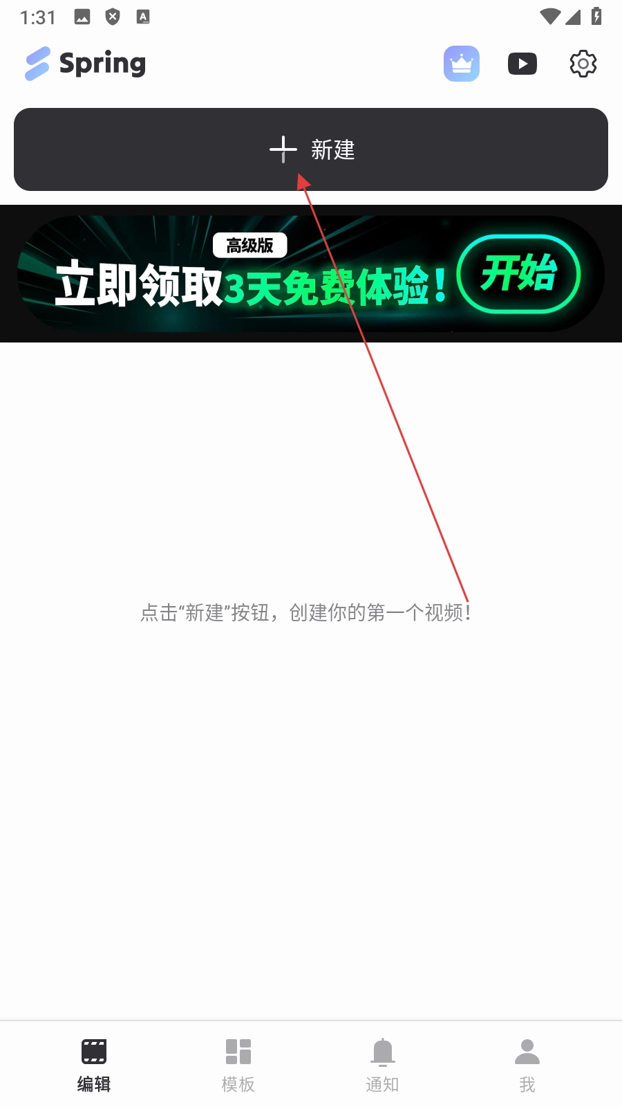 在编辑页面,点击【新建】,进入媒体选择页面。