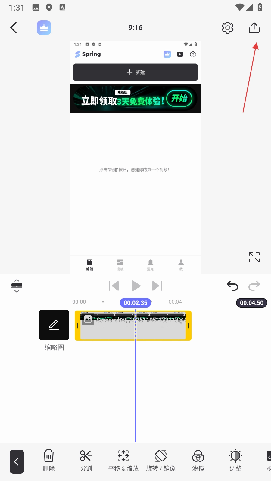 编辑完成后,点击右上角的分享图标,就能执行视频保存的操作了。