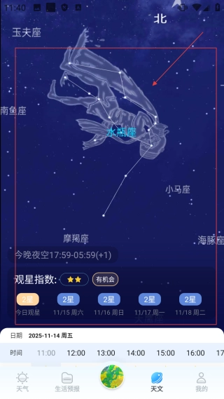 进入天文界面后,你可以【查看星座的分布情况、了解实时的观星指数,还能获取专业的天文观测信息】,尽情享受天文探索带来的服务。