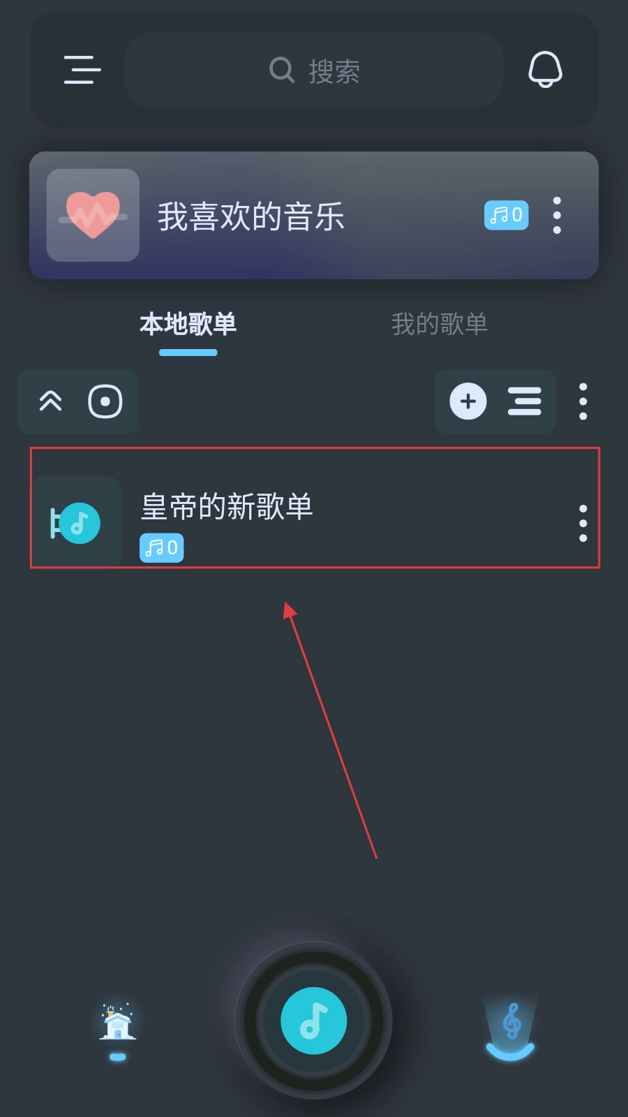 完成歌单创建后,就可以在本地歌单页面查看刚刚新建的歌单了。