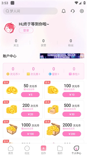 你可以在本站找到易次元的资源并完成安装,打开应用后进入主页面,接着点击下方导航栏最右侧的“我的”选项。